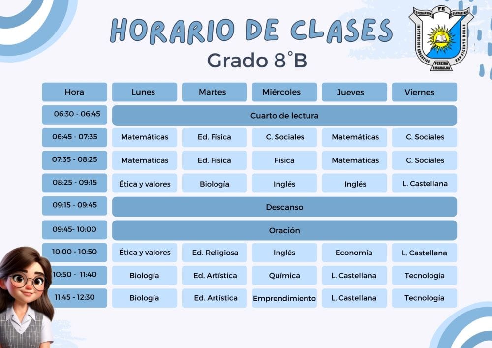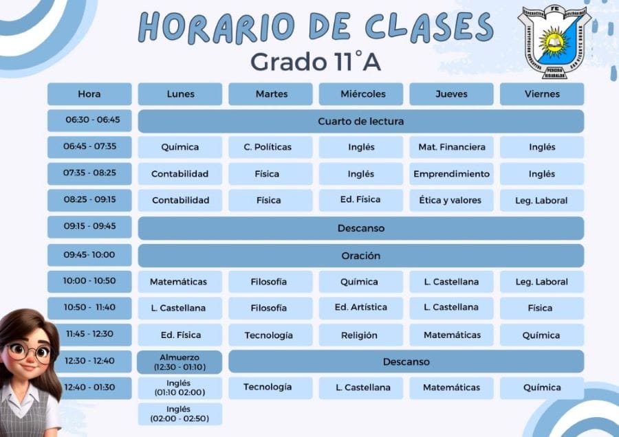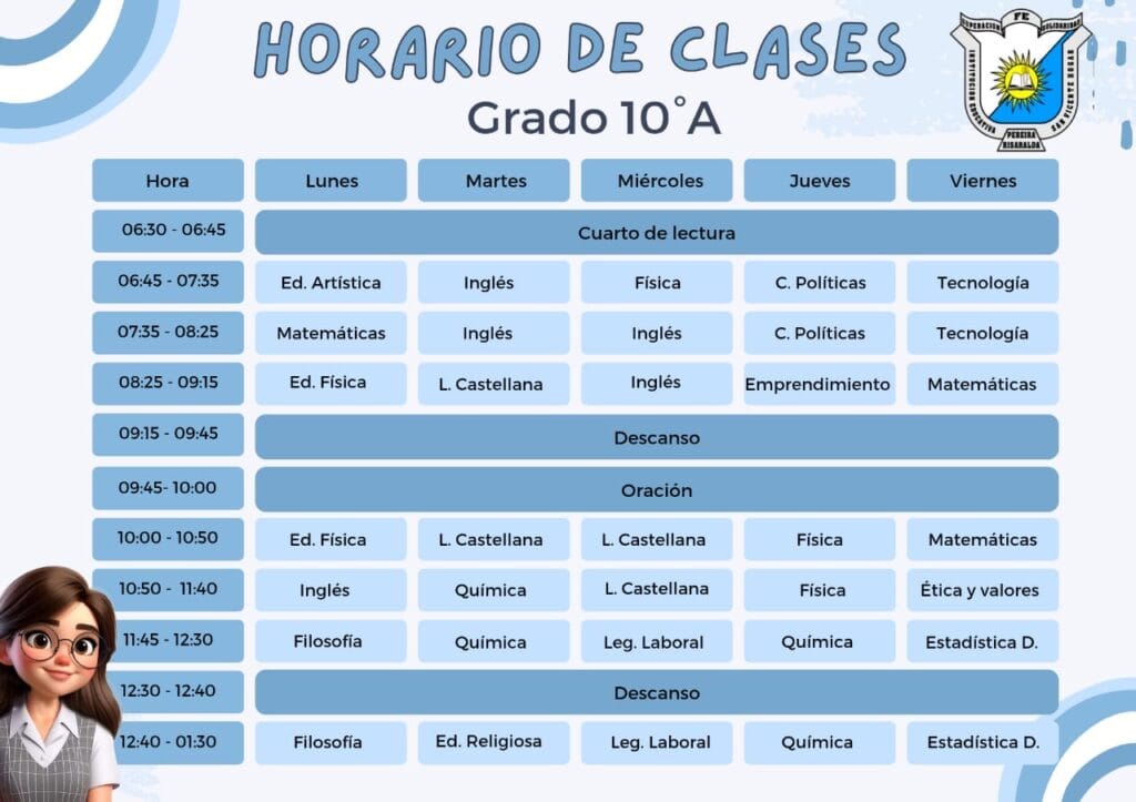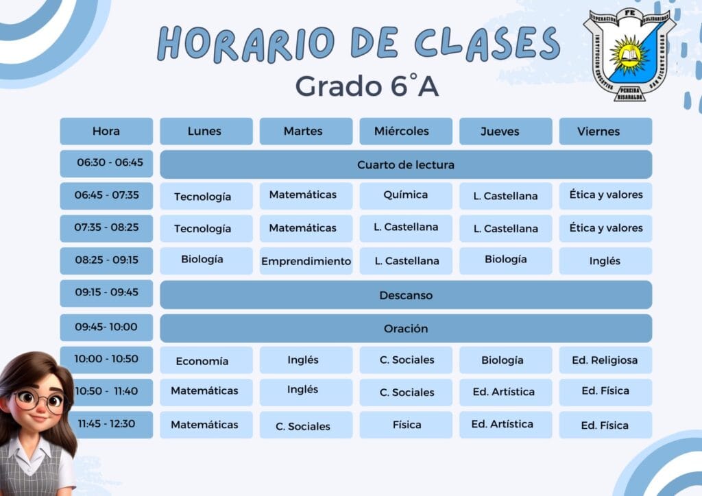 HORARIO BÁSICA SECUNDARIA Y MEDIA TÉCNICA12 de febrero de 2025Horarios y Atención a PadresSEXTO ASEXTO BSÉPTIMO ASÉPTIMO BOCTAVO AOCTAVO BNOVENO ANOVENO BDÉCIMO ADÉCIMO BONCE
